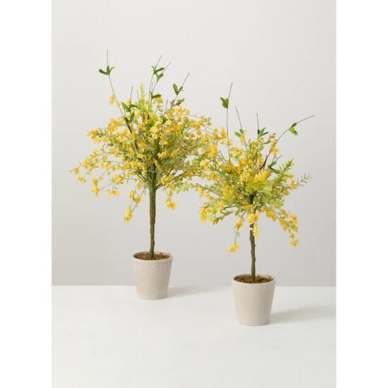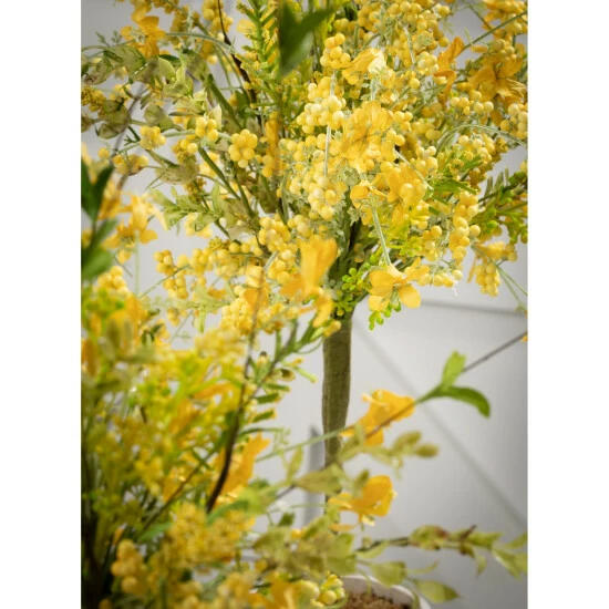 Bring your interior space to life with a touch of lasting nature. This yellow wispy collection is the perfect way to add texture and interest to arrangements and so much more. The beautiful plastic florals make this a long-lasting accent. Dimensions: 12″L x12″W x25″H; 11″L x11″W x22″H.
